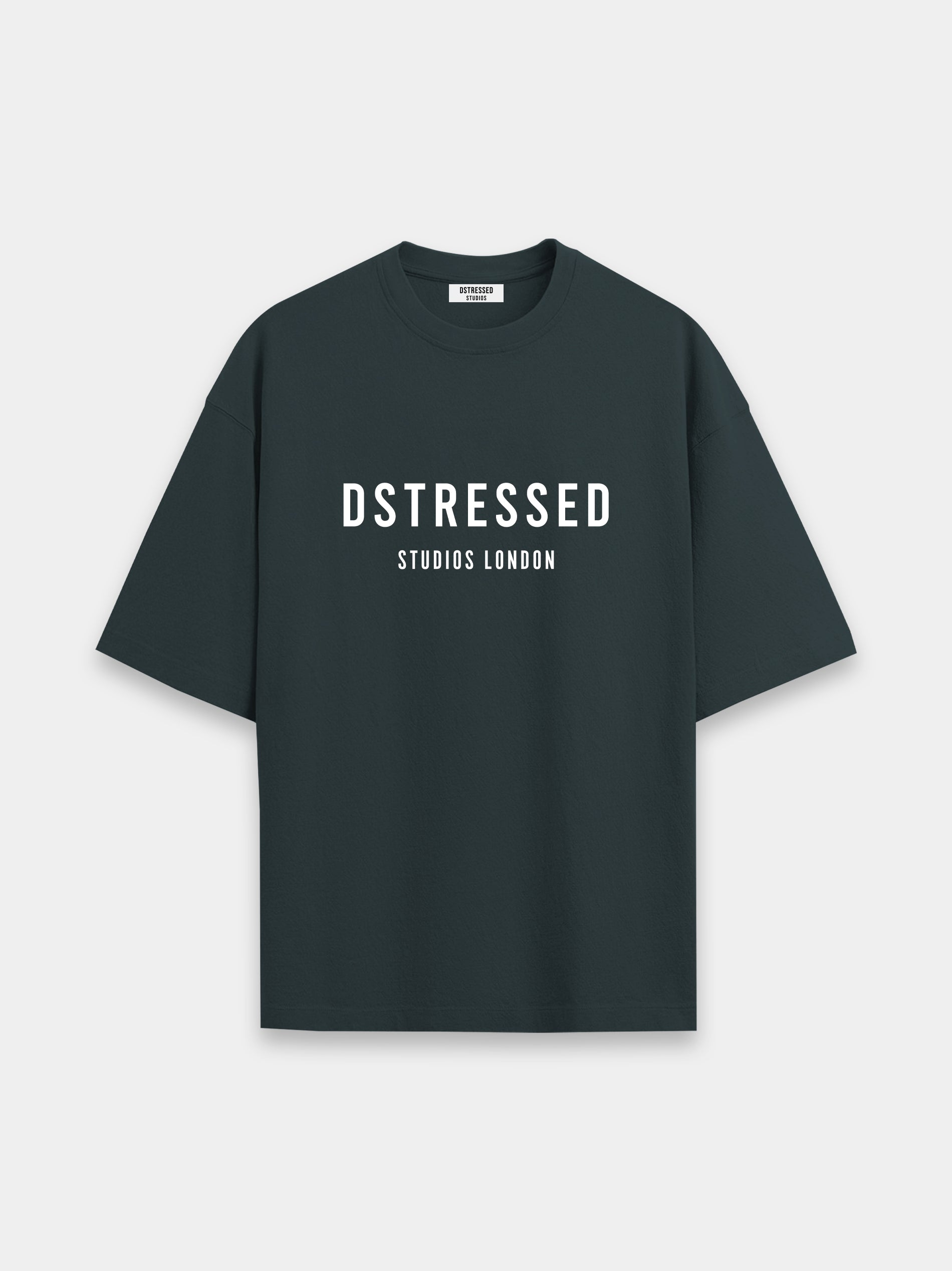 The Classic Dstressed Studios Tee is made from core 100% cotton jersey. The rib-knit crewneck tee fits relaxed in the body with dropped shoulders. The "Dstressed Studios London" collegiate graphic is screen printed on the center front, and Dstressed Studios label is at the back collar.