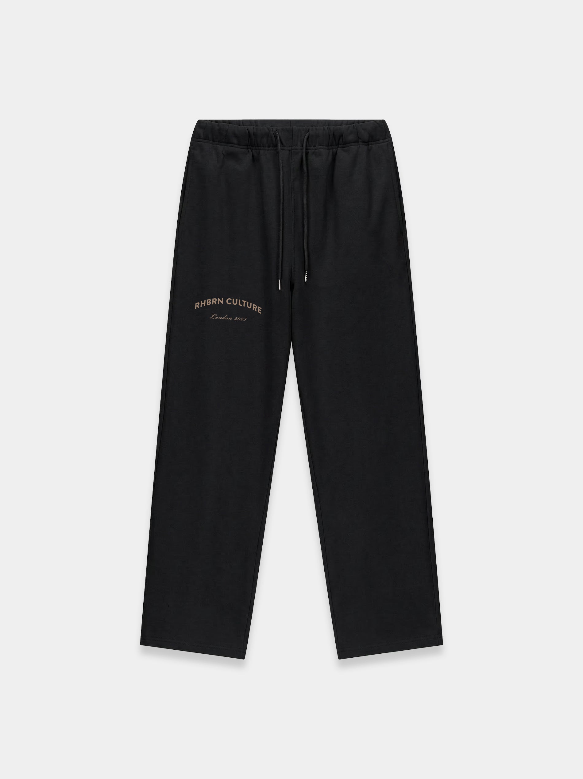 The RHBRN Heavyweight Sweatpant is crafted from pigment-dyed, heavyweight 460gsm cotton fleece, offering a soft feeling and a voluminous wide-leg silhouette. Branding features a bold Rhbrn Essentials-printed logo on one leg, Functional details include an elastic waistband with elongated drawstrings and side pockets. The look is polished and classy with a agreable feeling.