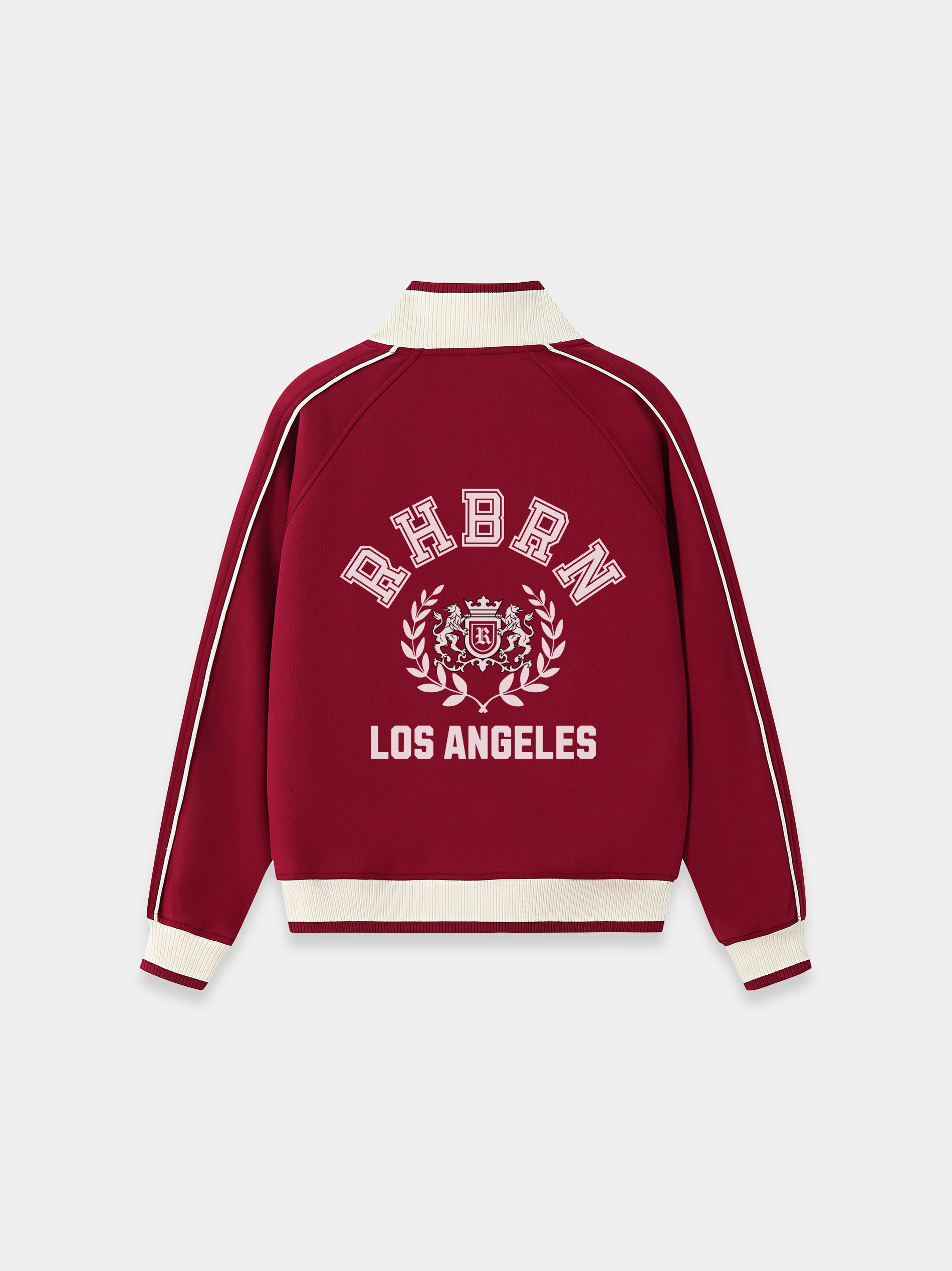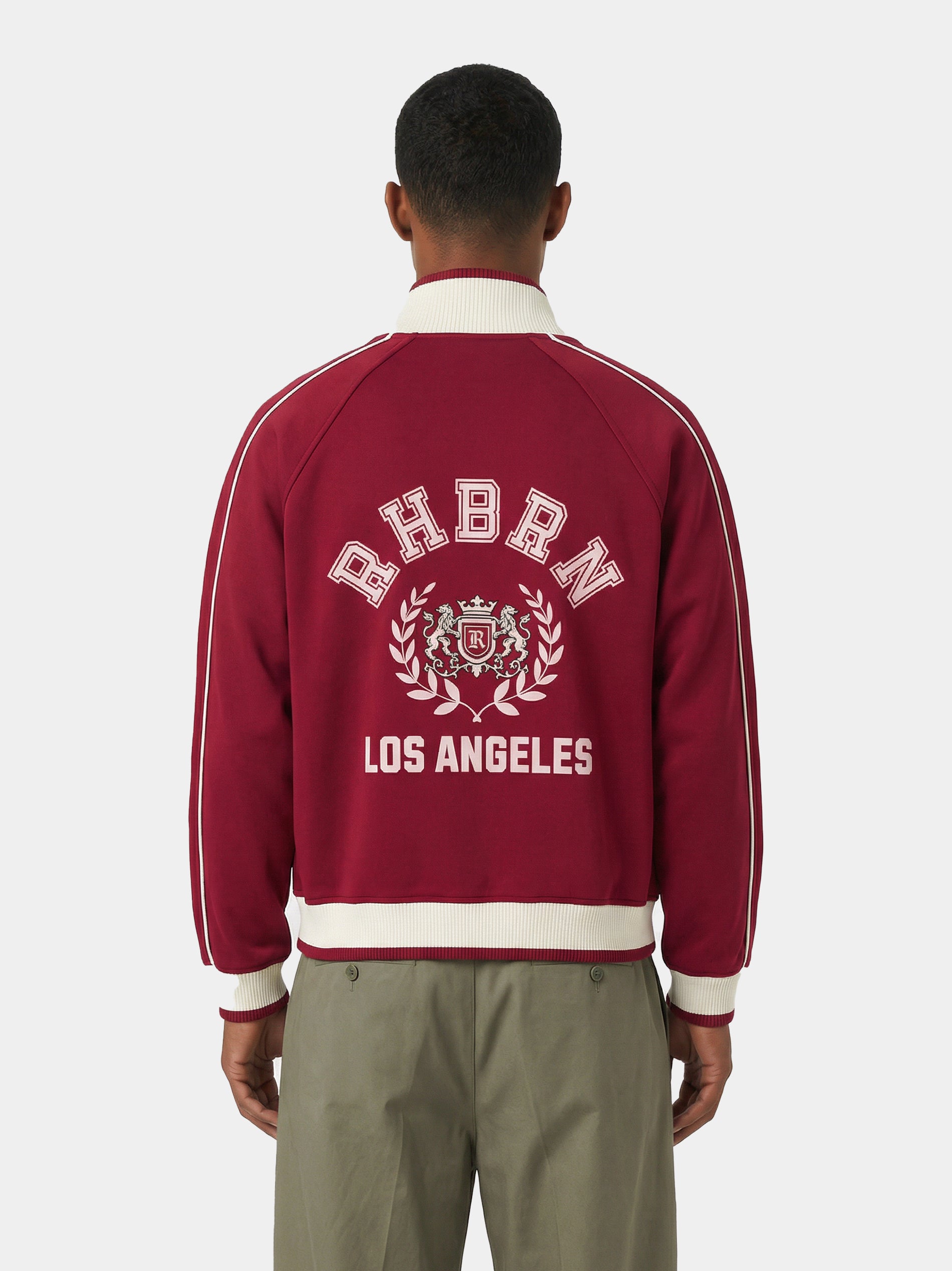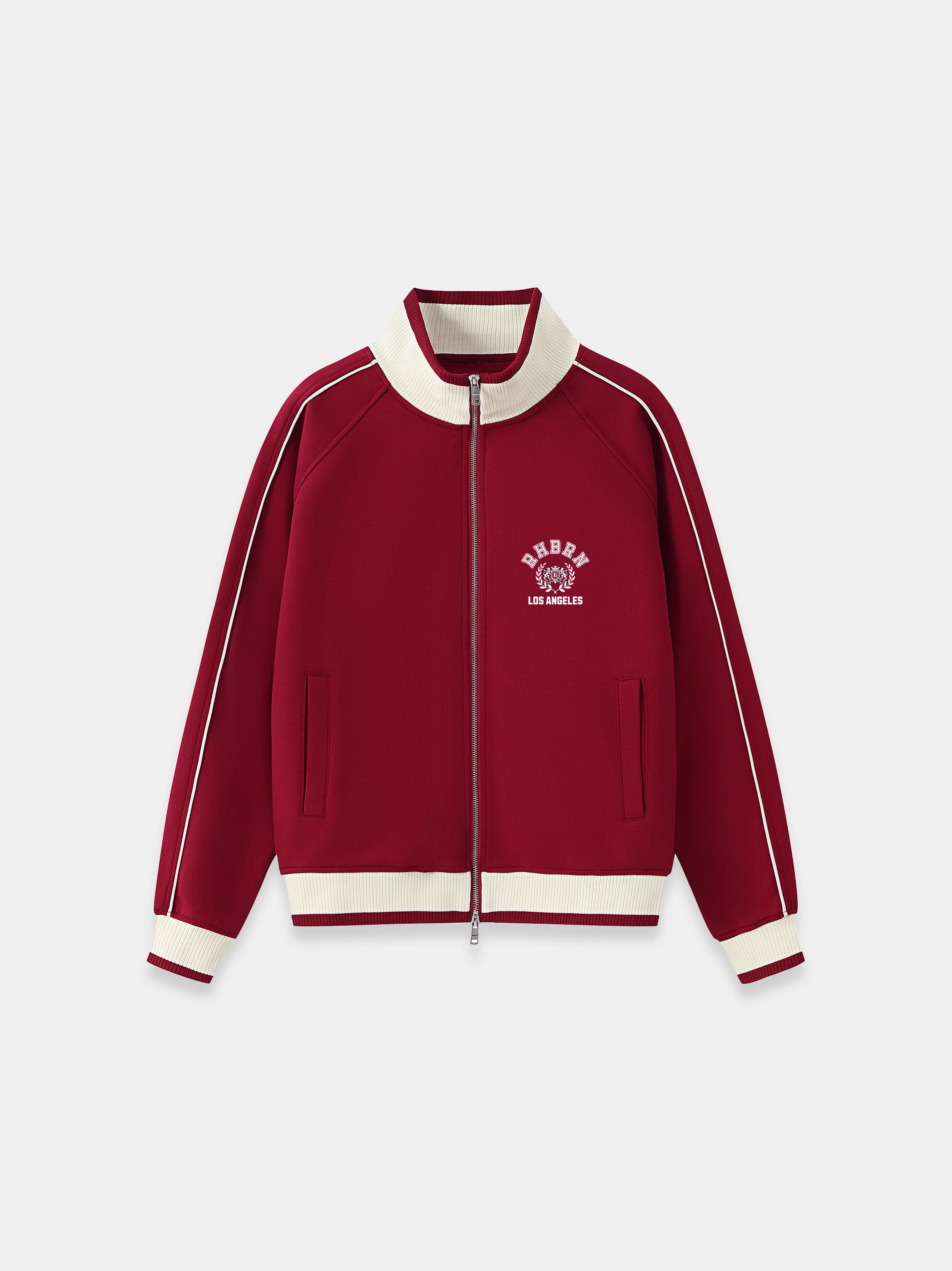 Classic Rhbrn Full Zip Trackjacket is crafted from 380gsm. This contemporary jacket features striking color blocking on raglan sleeves and a modern stand collar design. Its classic silhouette is defined by a signature logo on the front. Rhbrn woven label stitched in the collar.